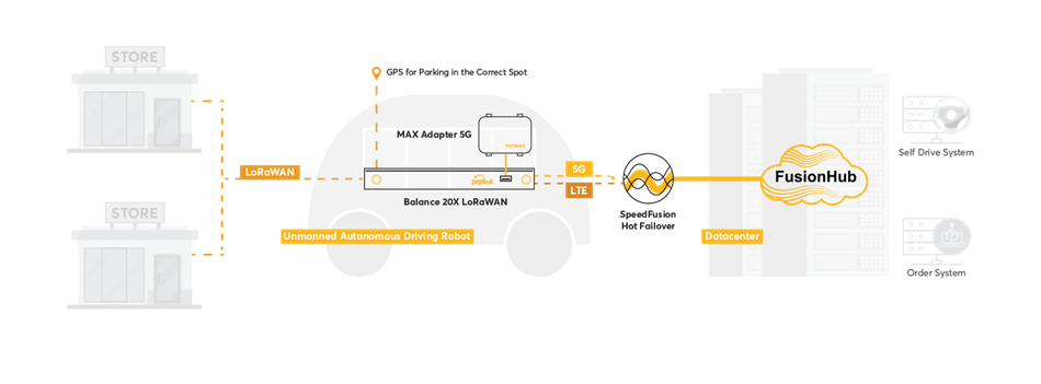 Với SpeedFusion Hot Failover, robot có thể hoạt động ổn định, hoàn toàn tự động mà không cần sự giám sát thường xuyên. MAX Adapter 5G đảm bảo độ trễ thấp, giúp duy trì hiệu suất vận hành cao. Đồng thời, dữ liệu được truyền liên tục qua đường hầm VPN, giúp đội kỹ thuật dễ dàng theo dõi và can thiệp từ xa khi cần thiết.